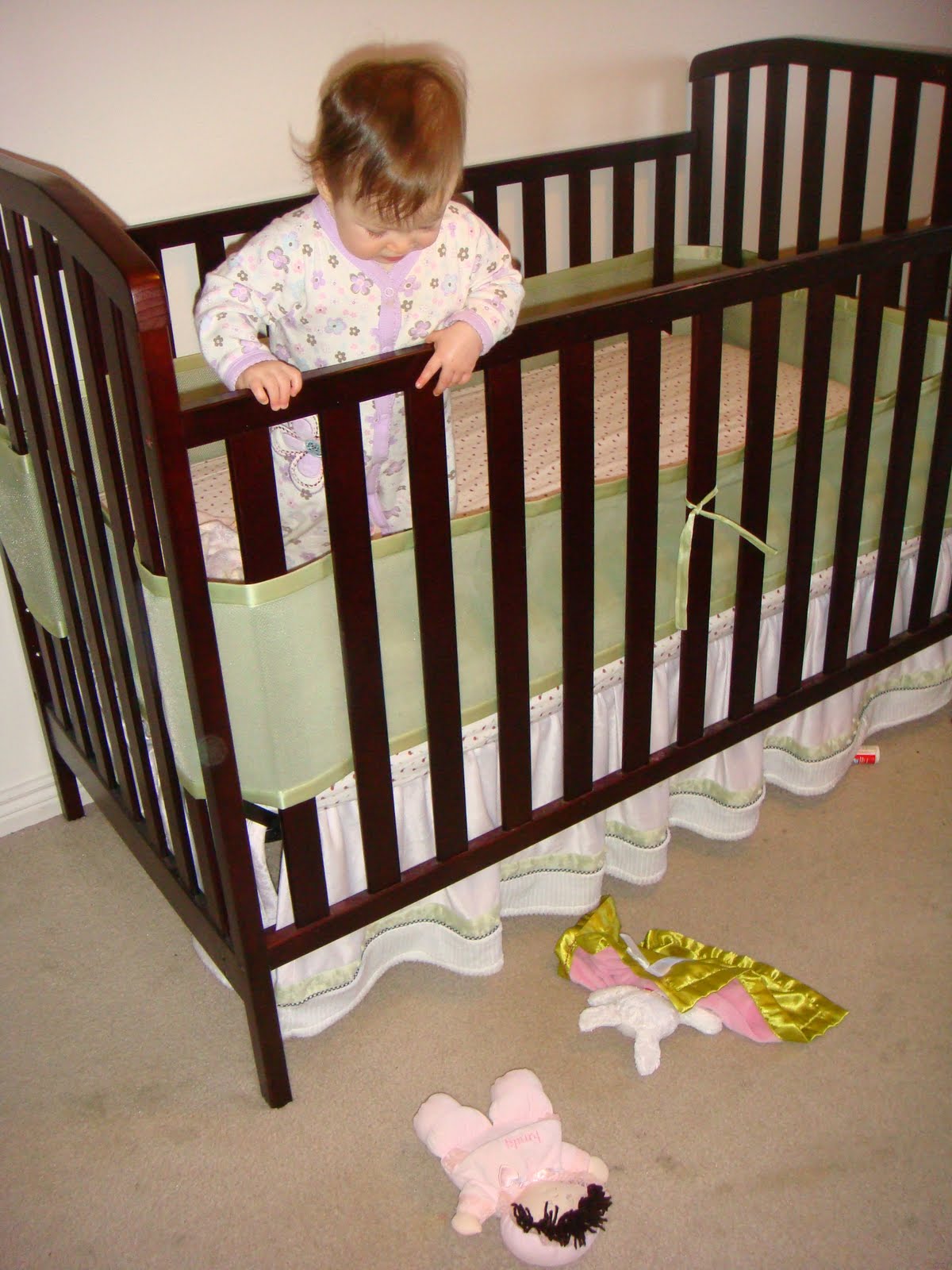 Getting Emmy up in the morning is one of my favorite things. First we hear her hooting in her room, and when we go in to get her, she has thrown her doll and her bunny out of her crib and is pointing at them letting us know that she wants them.